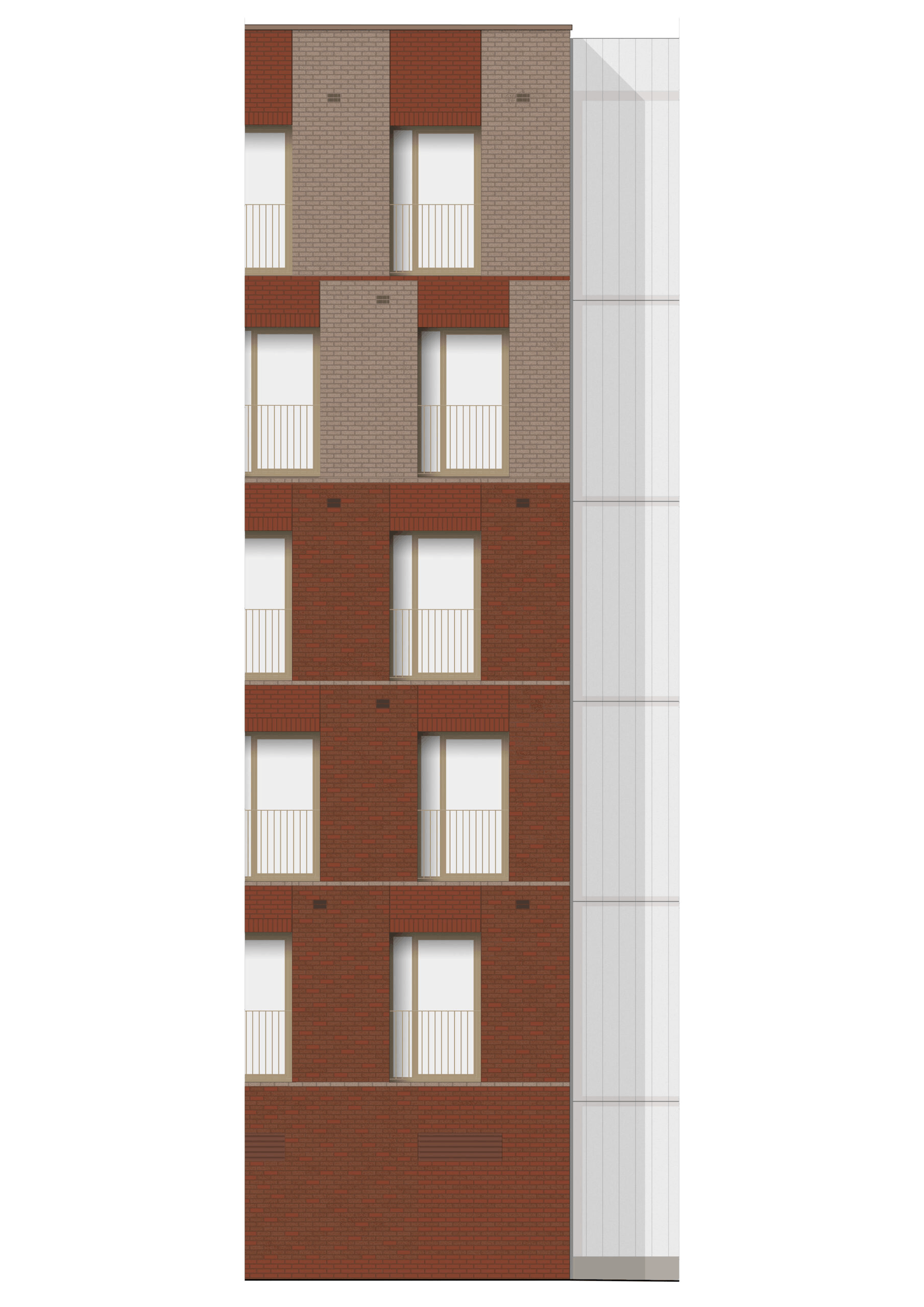 Located close to the centre of Barking, this scheme provides 78 new homes for local, first-time buyers. Arranged in two blocks, the scheme addresses a busy road to the west and a quiet residential neighbourhood to the east. As part of our design, we introduced a new public, pedestrian route linking the two and giving access to a pair of secluded courtyard gardens for residents.