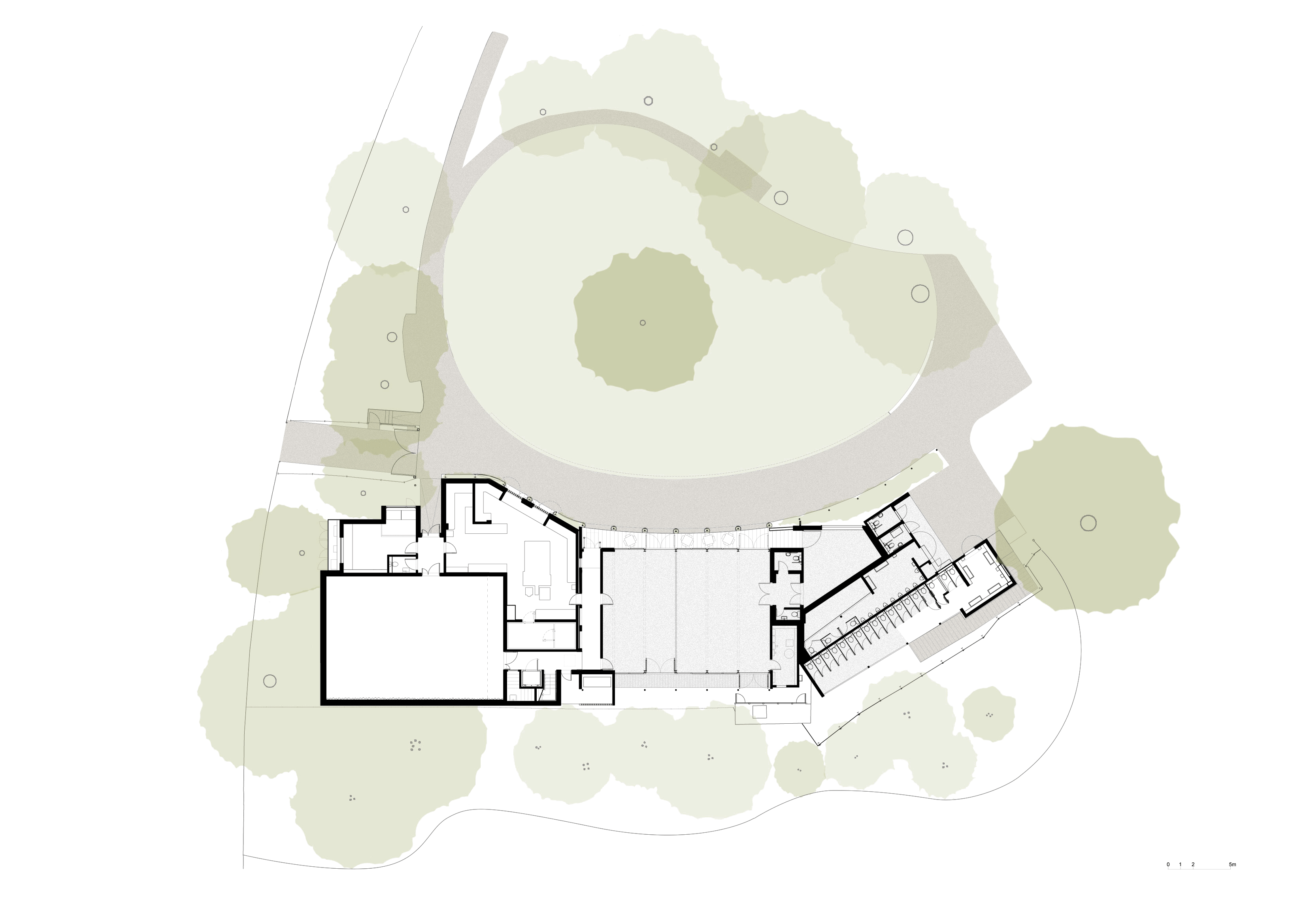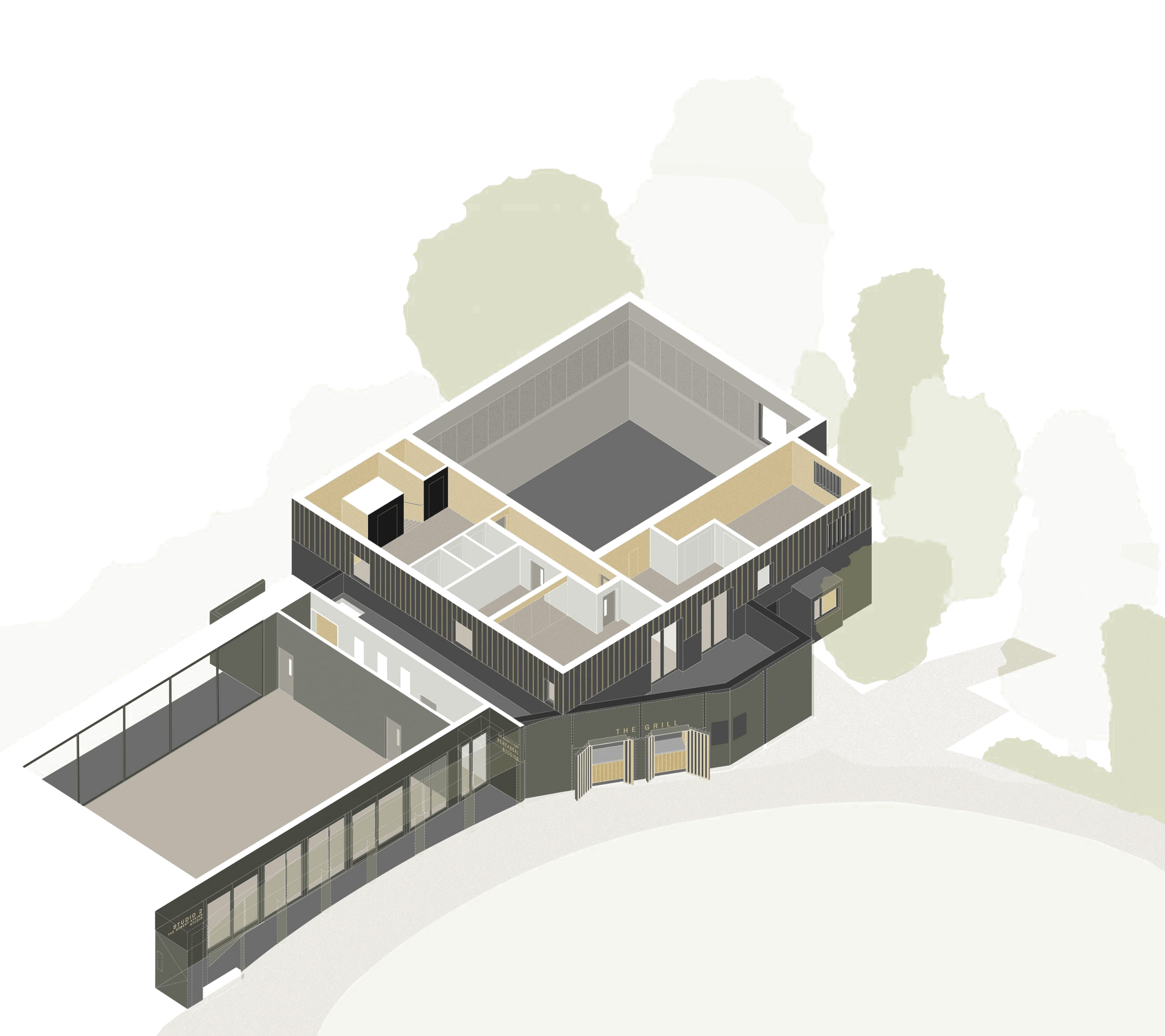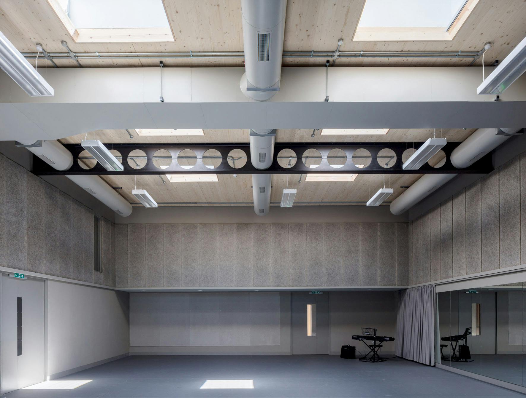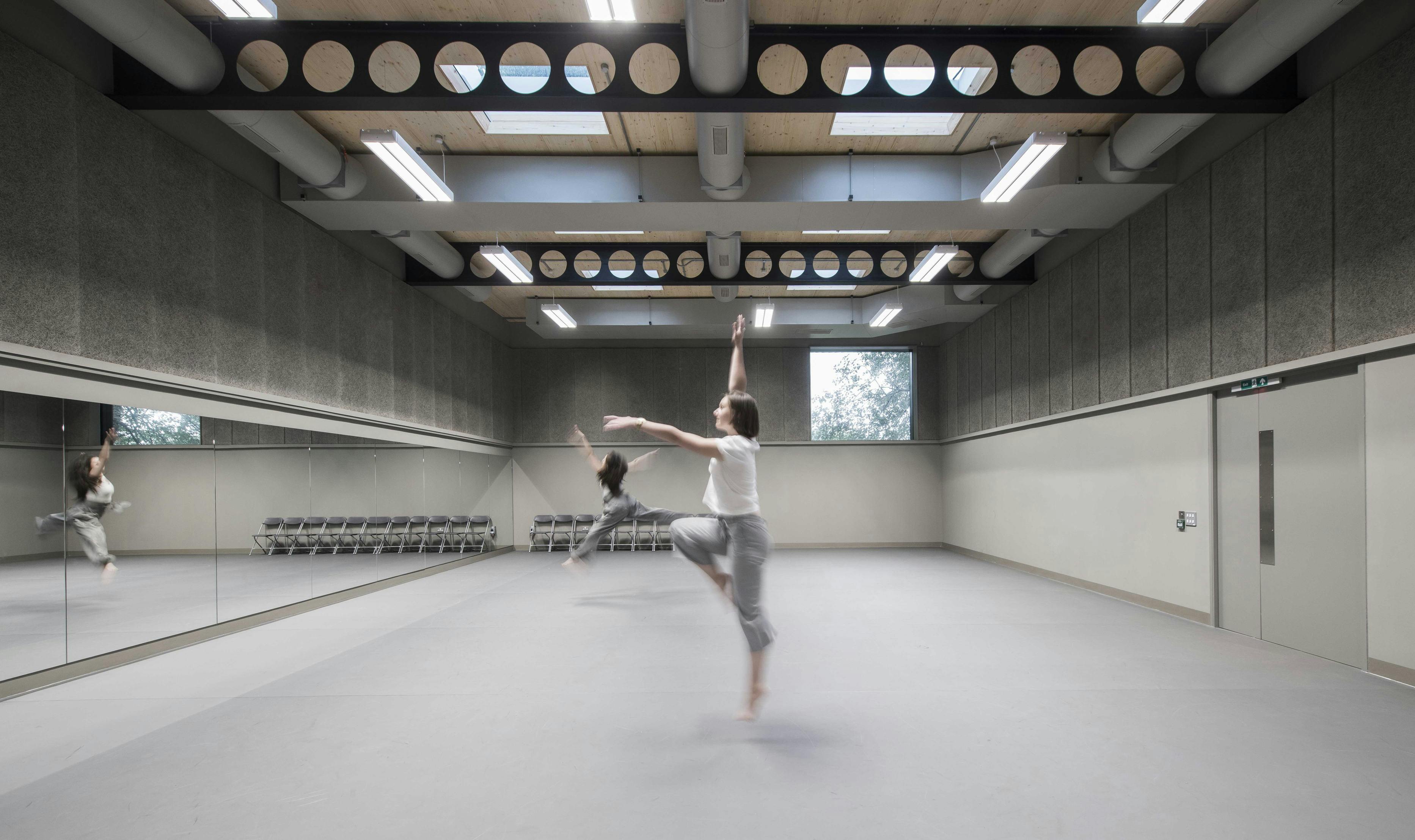 The construction of a new rehearsal building has allowed the theatre to bring all of its production facilities together on the site for the first time since it was established in 1932. With the double-height rehearsal studio at its centre, the building also incorporates a new commercial kitchen, offices, green room and smaller rehearsal rooms for voice work.