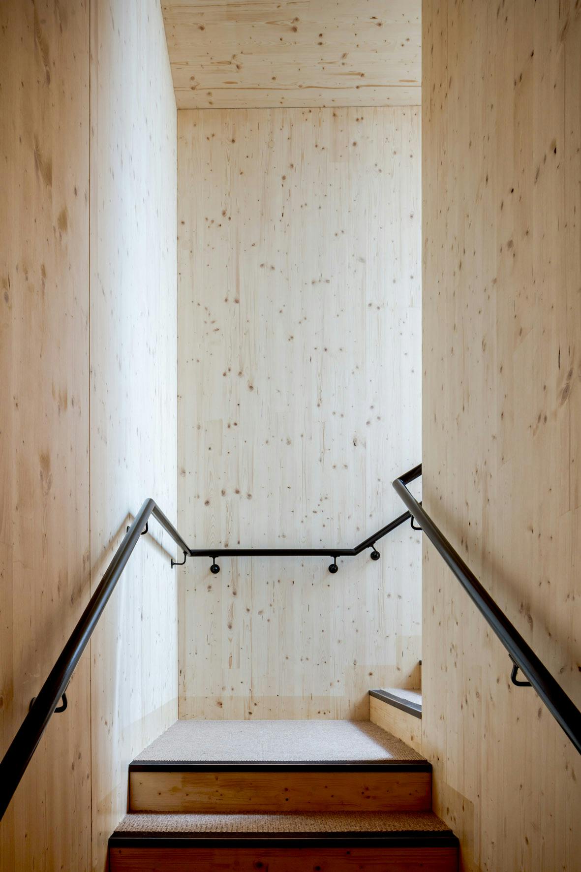 The new building has been constructed from a prefabricated cross laminated timber panel system. A total of 130m3 of solid timber was used in the walls, floors and roof of the building which equates to 95 tonnes of CO2 which will be stored in the structure over its lifetime. This lightweight structure was erected over two weeks and required relatively small foundations – minimising the impact on tree roots.