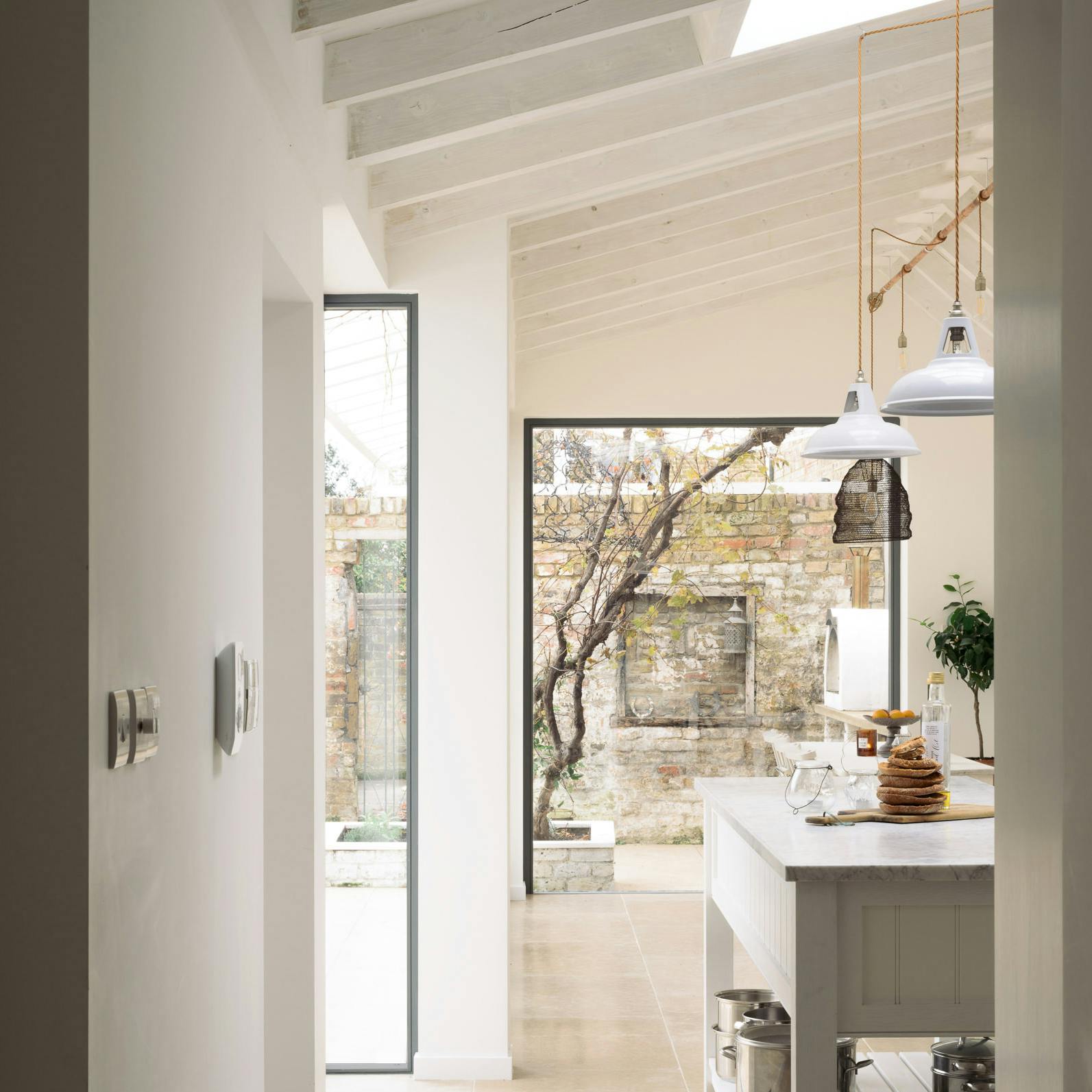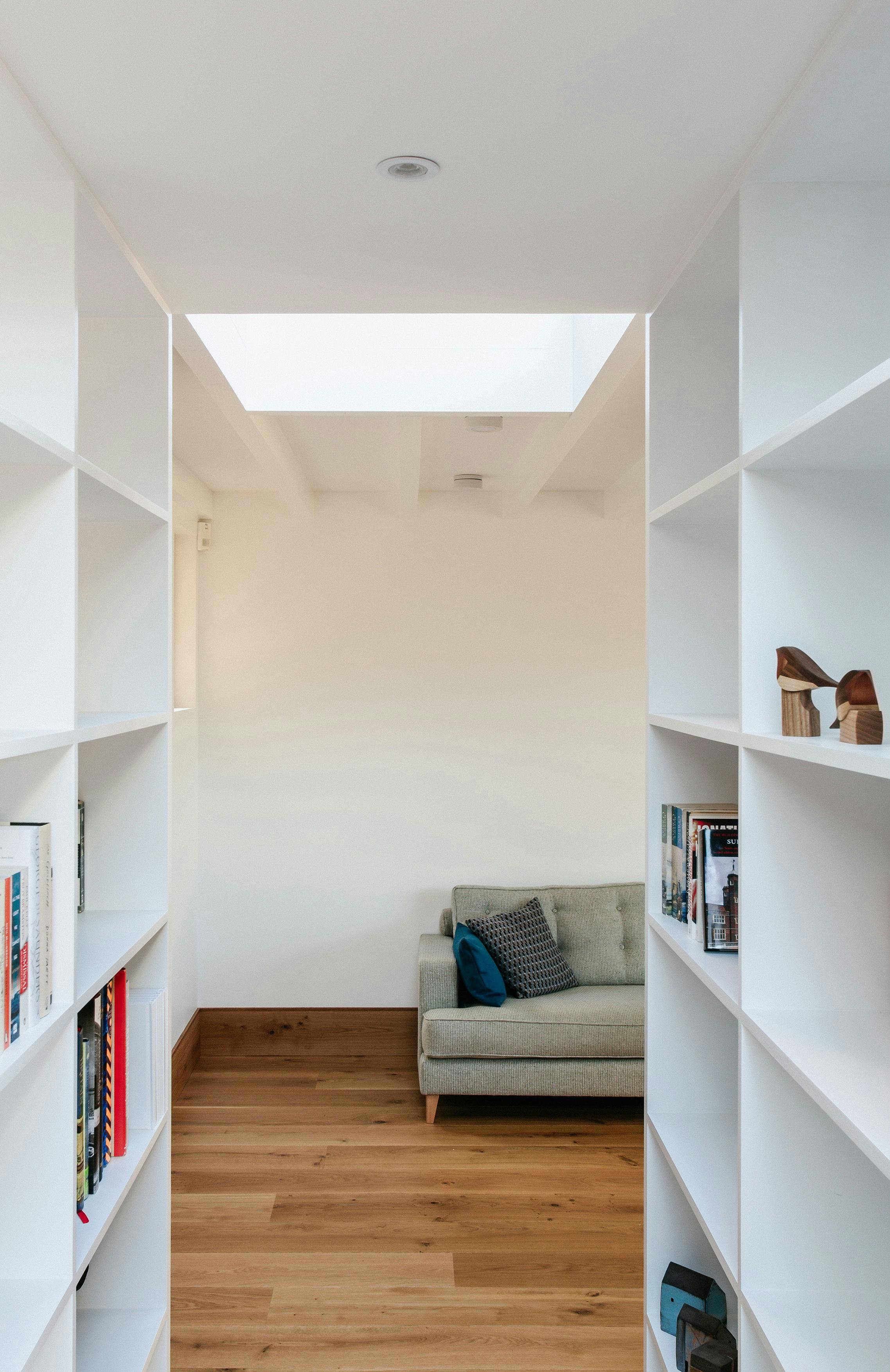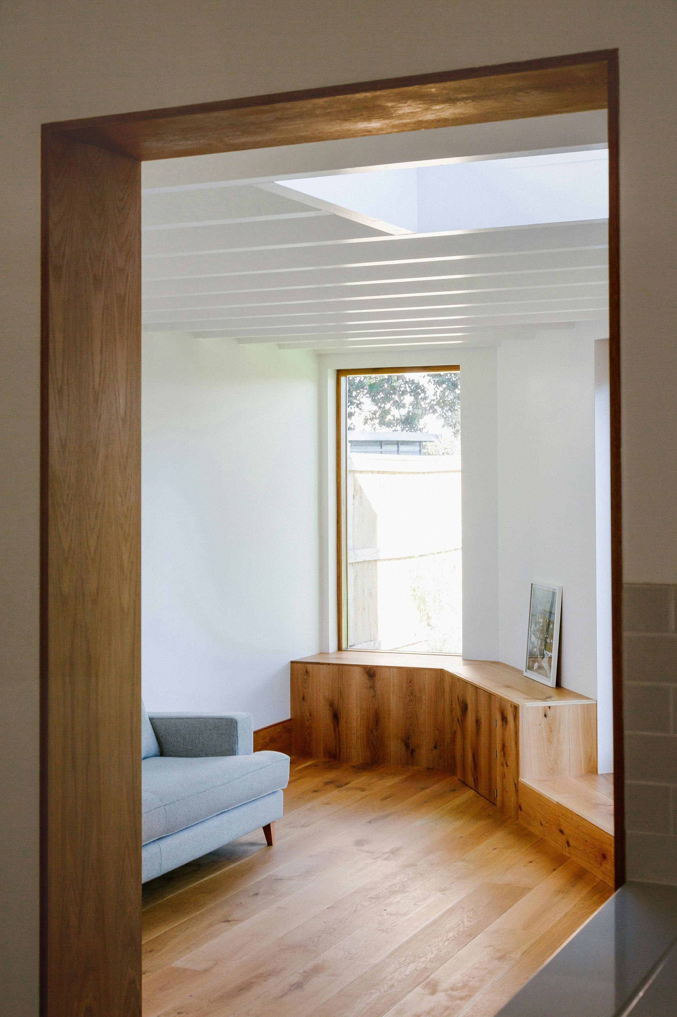 Openings are framed in oak to provide tonal and tactile warmth against the white, internal walls.
