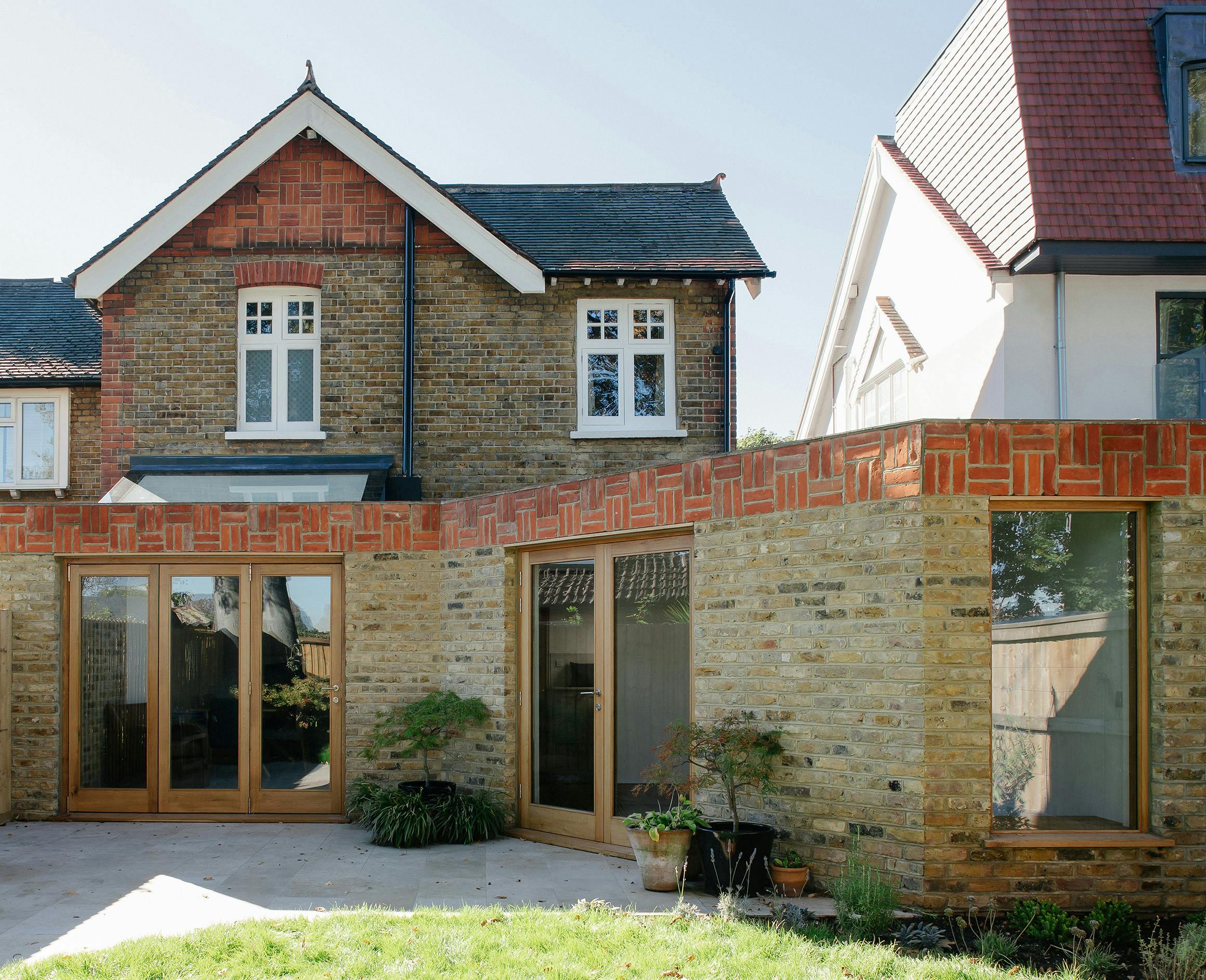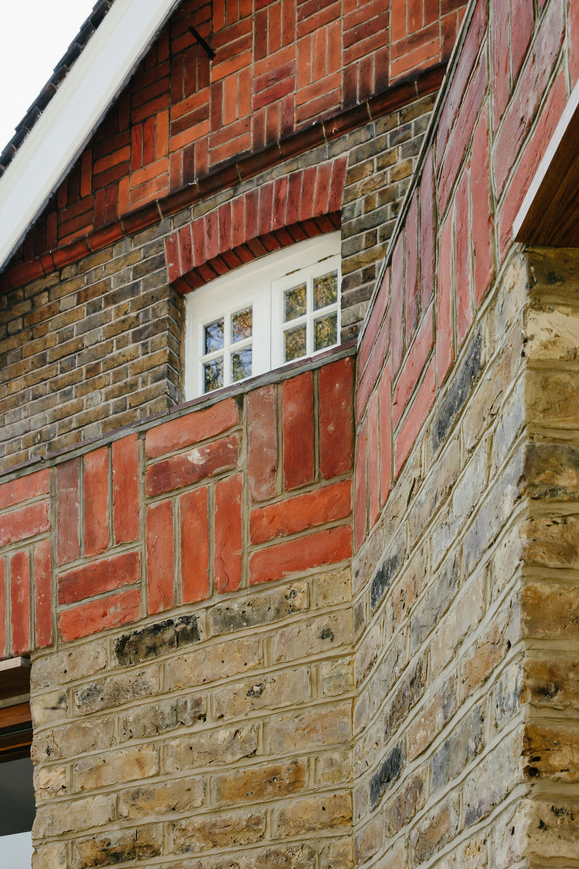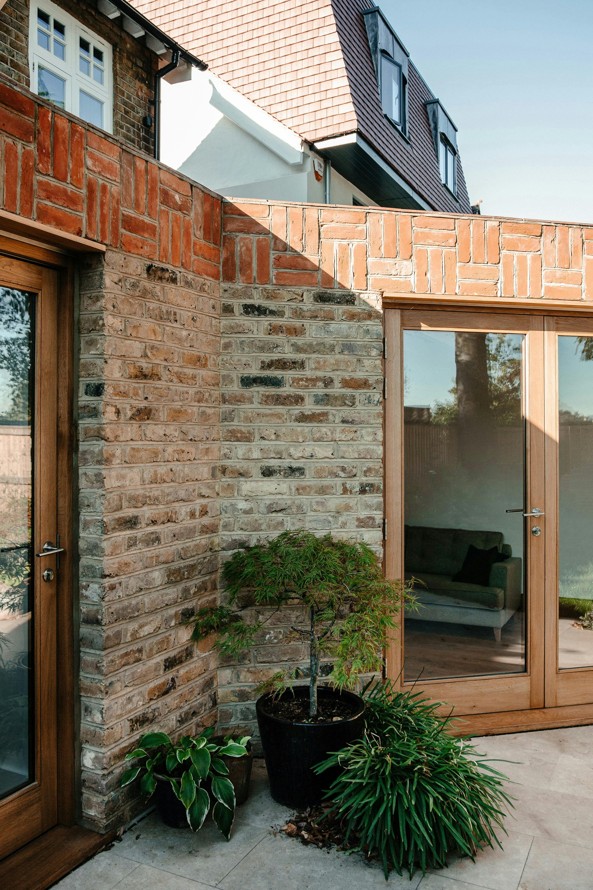 The use of second hand London stock brickwork as the predominant building material gives the architecture a physical consistency and provides coherence with the existing house. The red brick basketweave parapet references the material of the past without replicating it by interlocking the bricks rather than using the original stack bond pattern. The parapet is topped with salvaged red tiles from the original extension.
