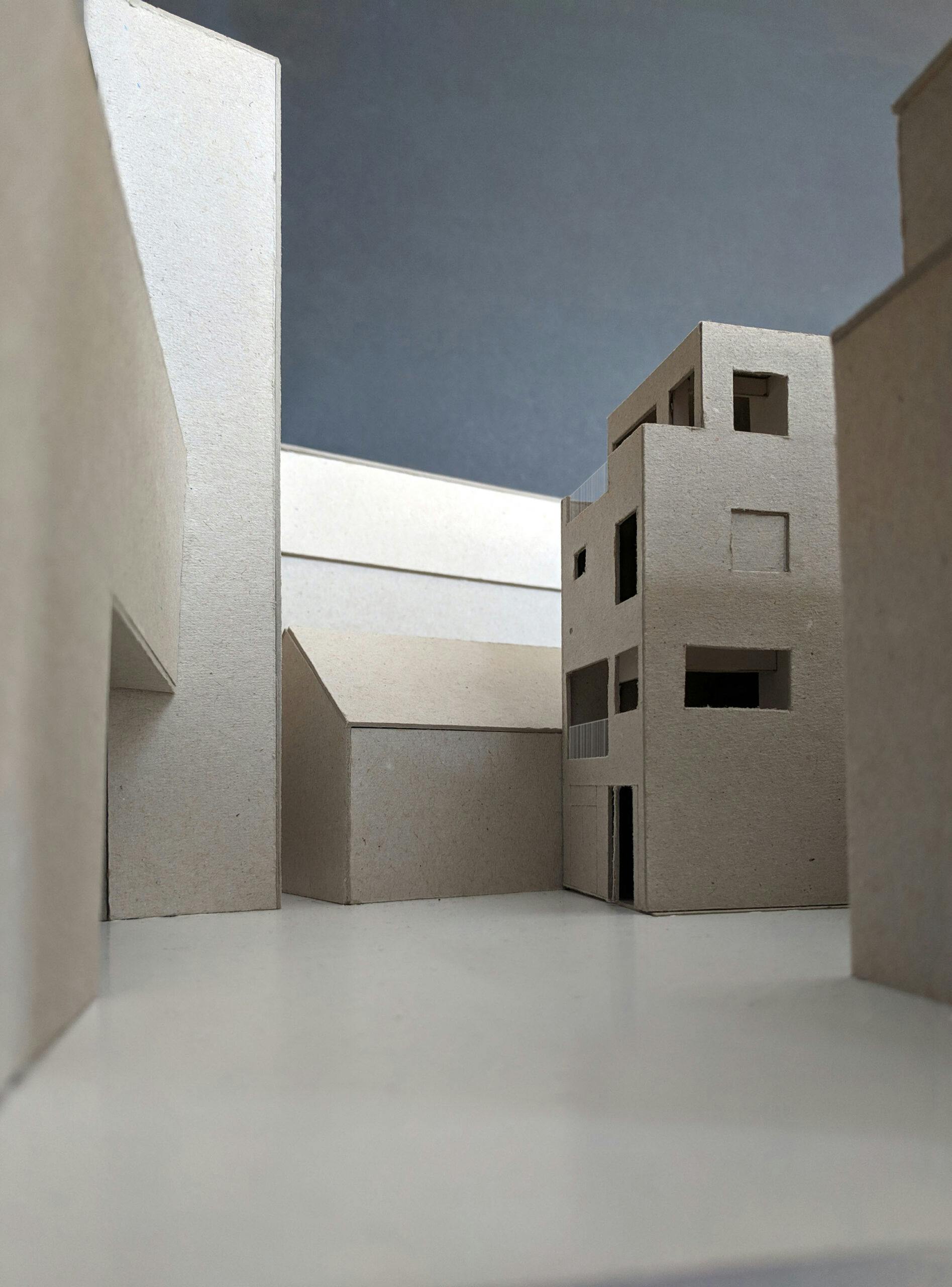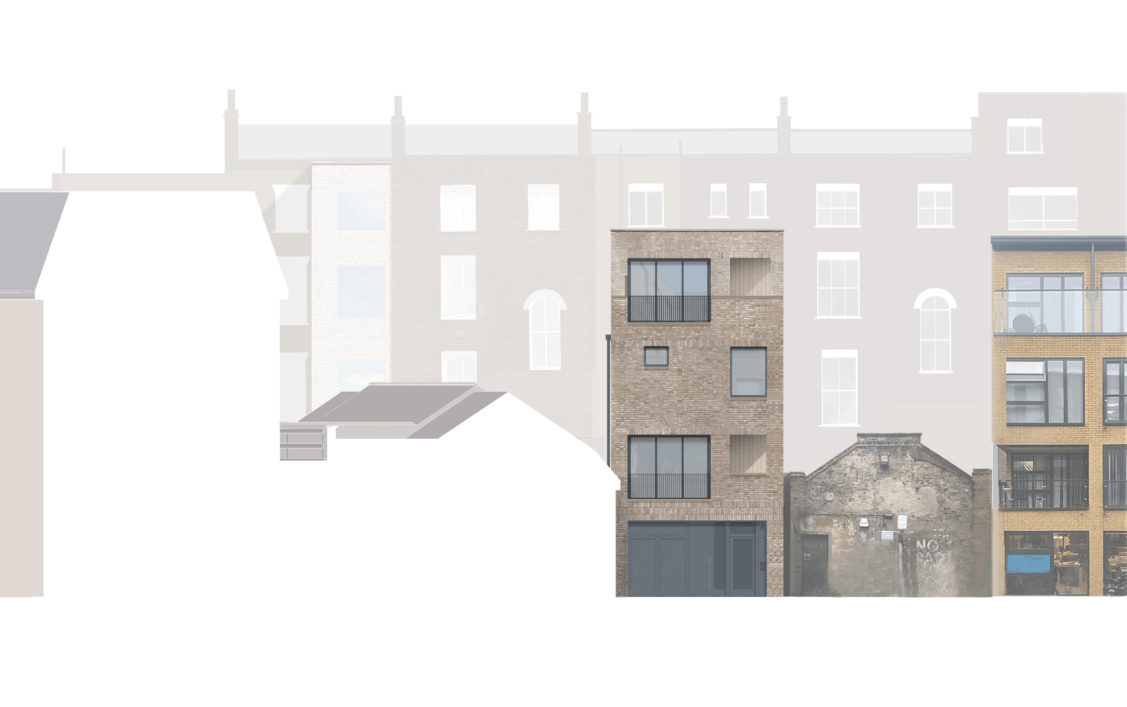Each of the flats has a private garden or balcony. We have carved out space from the front façade to create recessed balconies. These give residents privacy while maintaining solidity on the street. To the rear, a stepped section minimises impact on the adjacent properties and creates opportunities for green roofs.