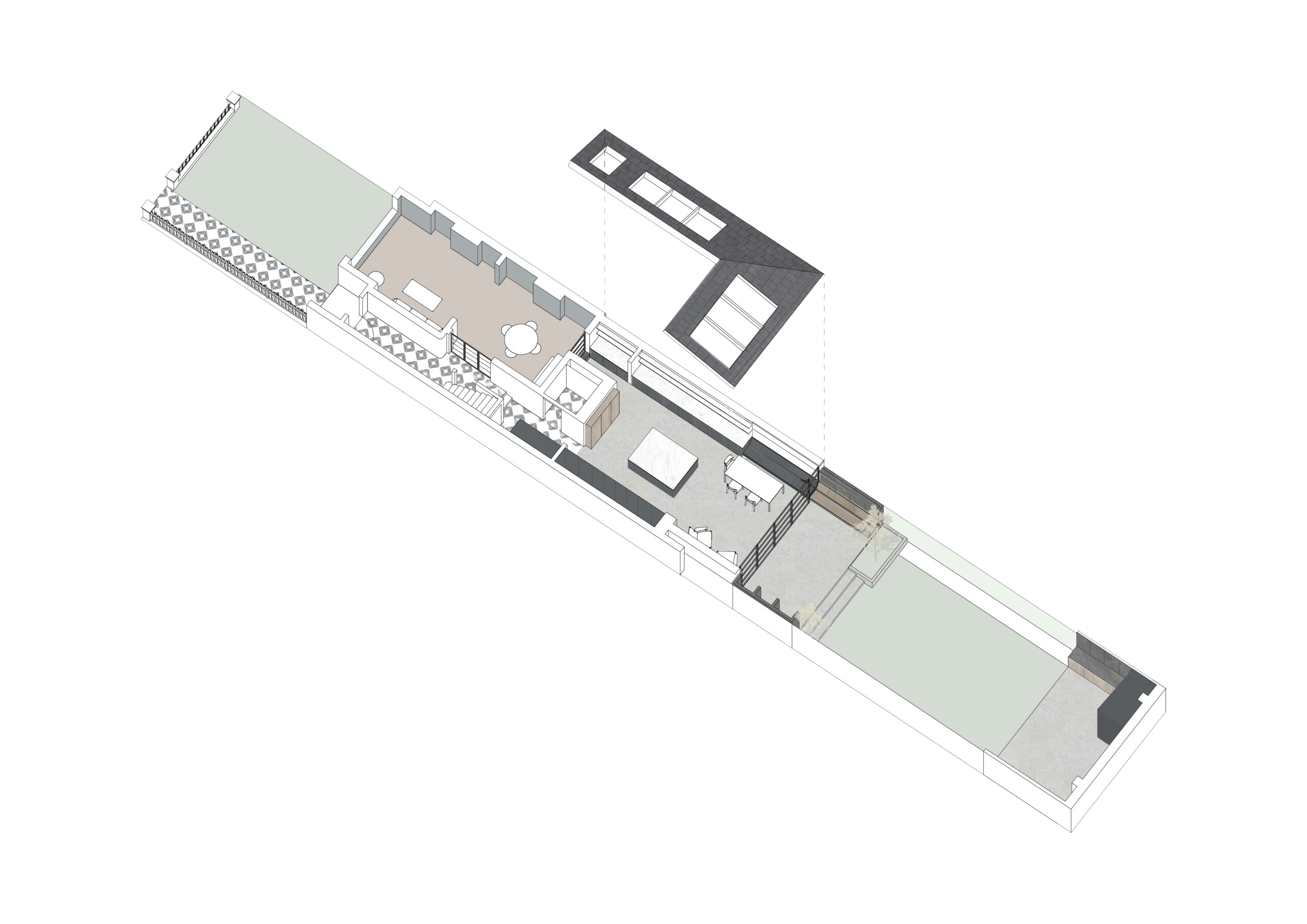 This Victorian house has been transformed by connecting the ground floor rooms, creating a structured enfilade of spaces where boundaries between uses are blurred to provide the family with multiple modes of living.