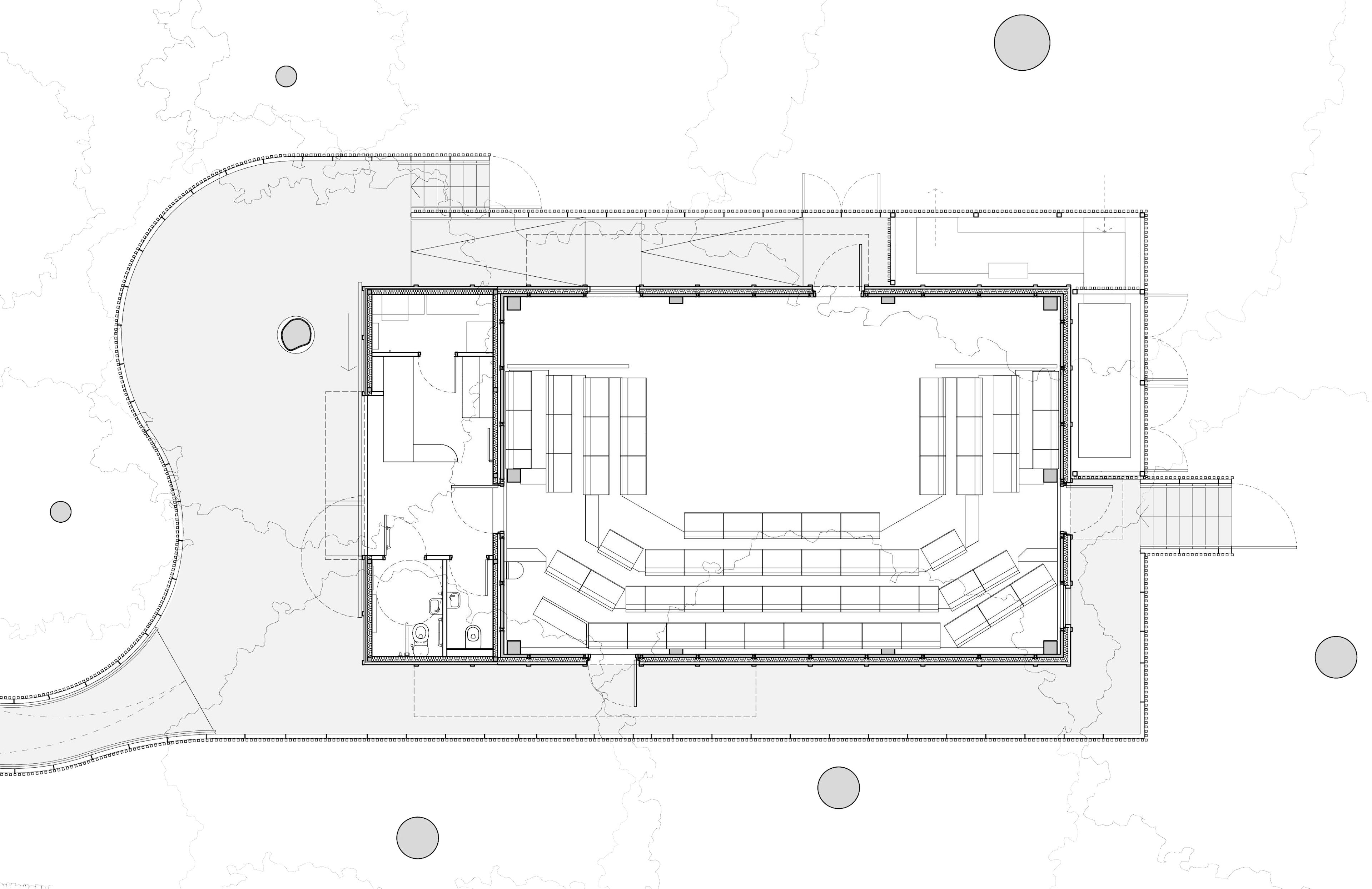 Carefully located between the existing trees to the south of the Festival Theatre the architectural language is designed to blur the distinction between built form and the woodland context.