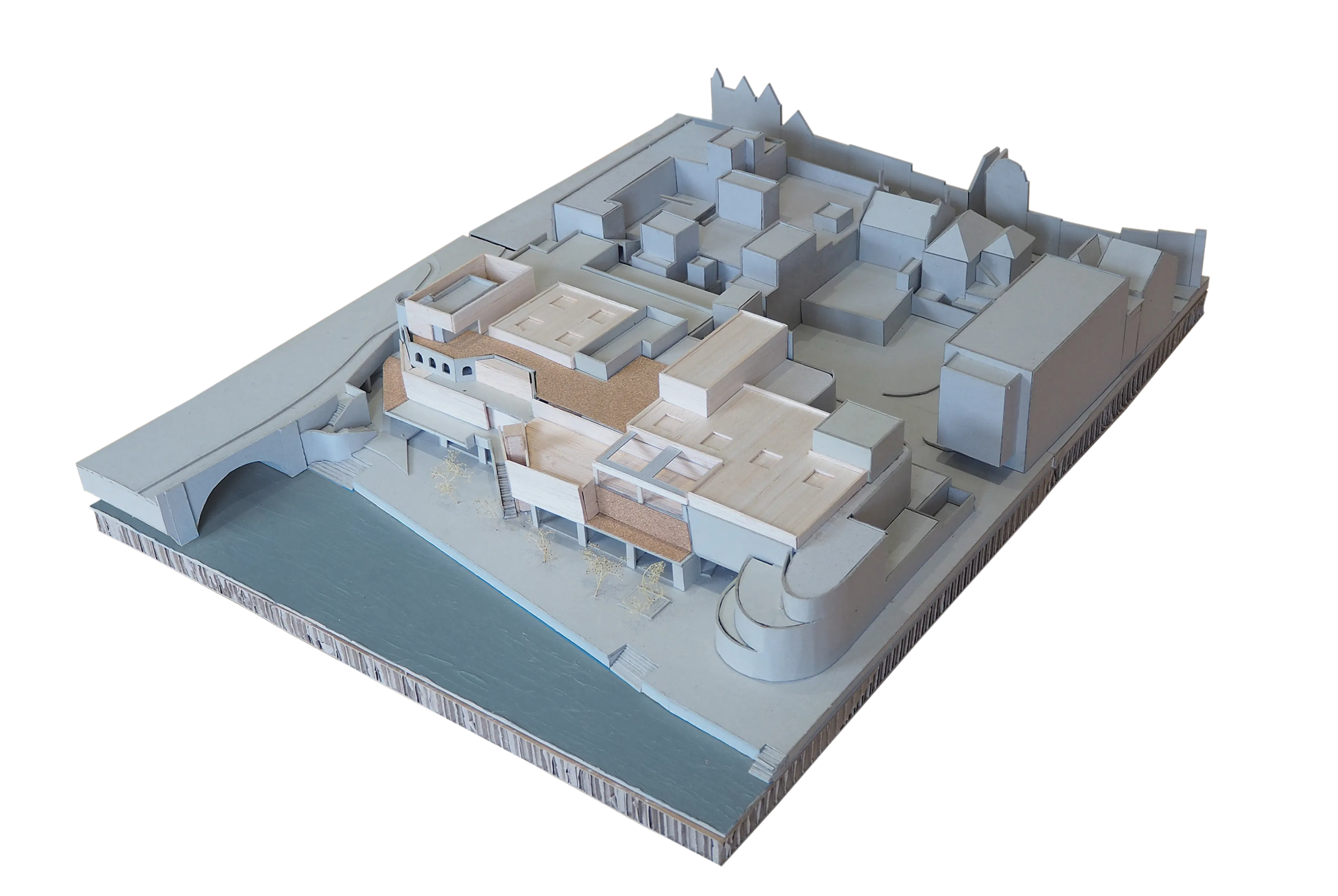 The elevational treatment seeks to break up the monotony of the existing facade which suppresses and masks the functions contained within and does little to connect to the river. A central lift and stair arrangement will provide step free access to all public levels for the first time. A palette of stone and render will visually bind the elevation to provide the building with an exciting new identity.