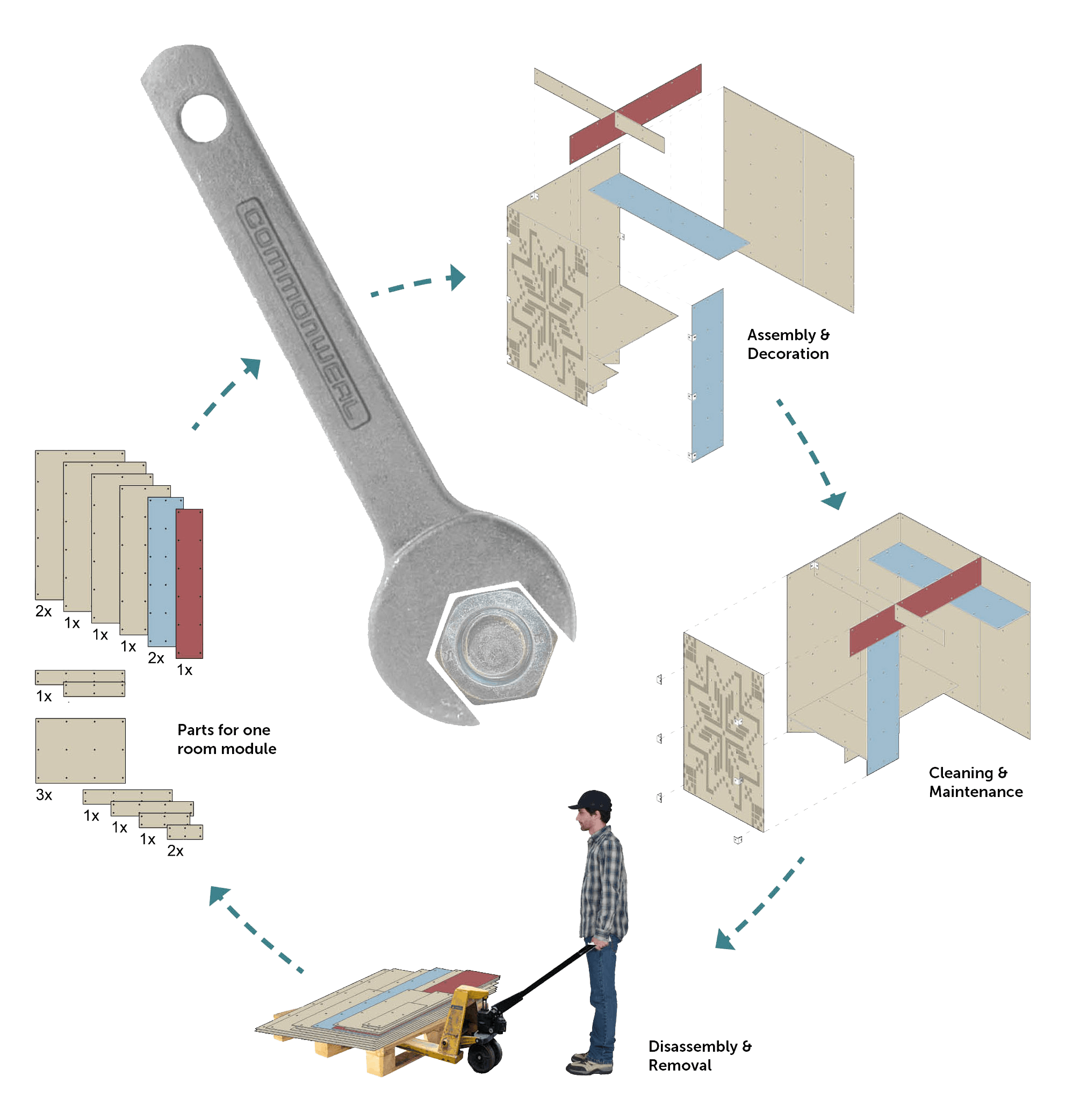 Reed Watts have developed this temporary bedroom pod in response to an ideas competition organised by Commonweal Housing. The competition sought proposals to help improve the living conditions of homeless migrant workers who would otherwise be living in tent encampments around London’s periphery.