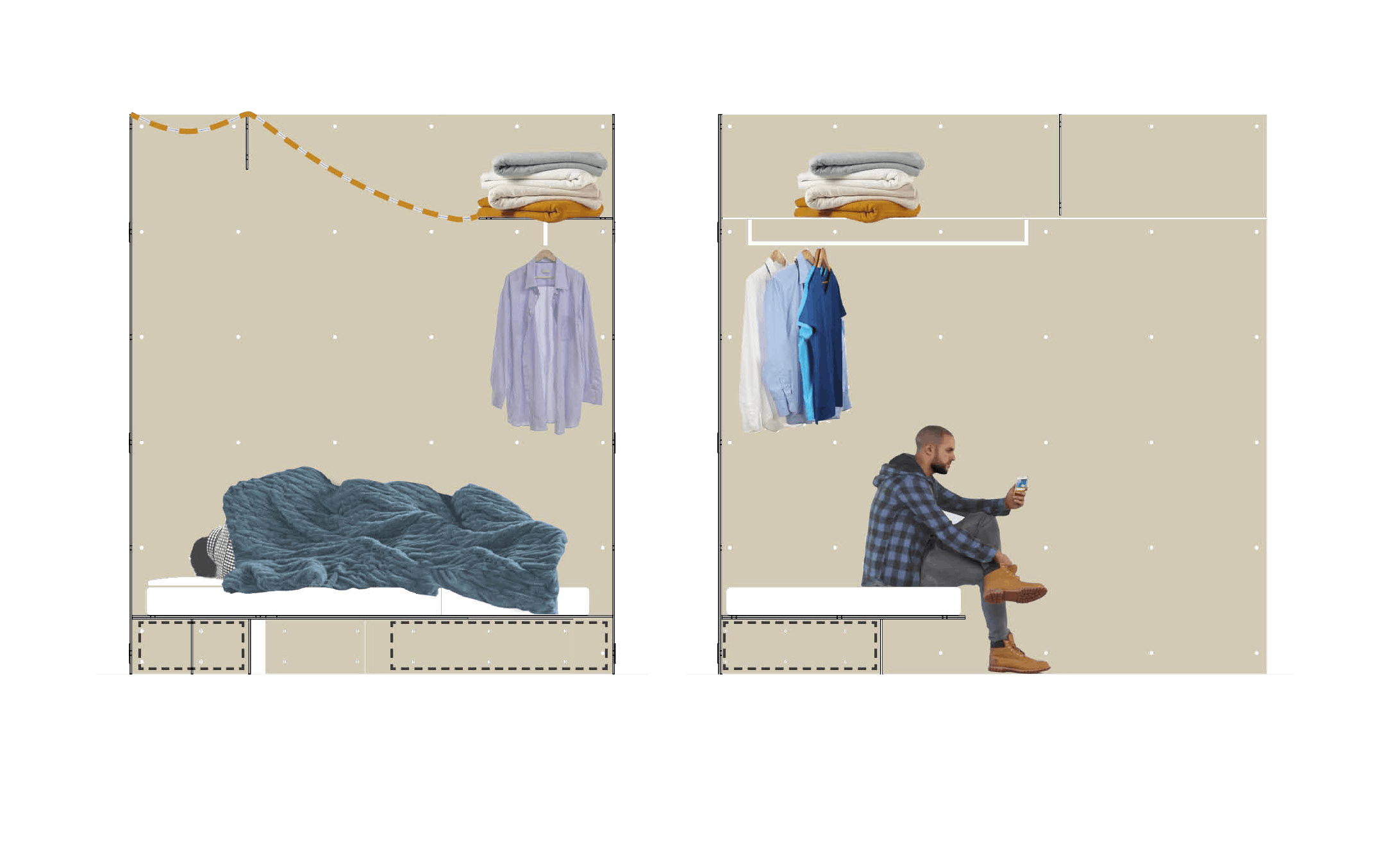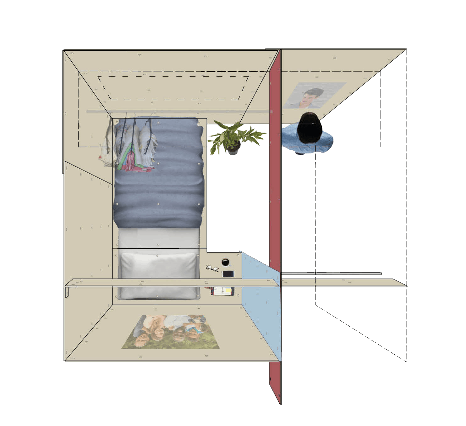 We have proposed a series of low-tech pods which will provide short-term accommodation for homeless people while they make the transition to permanent housing. The design will be made freely available for charities to use, helping them to provide personal, adaptable bedrooms with minimal financial outlay. The pods could, for example, be erected for short periods in different locations – a local community hall, vacant office or industrial building.